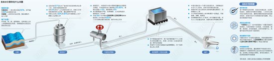 地表水源:中國約50%水源受到污染,上百種有機化合物、重金屬離子進入水源