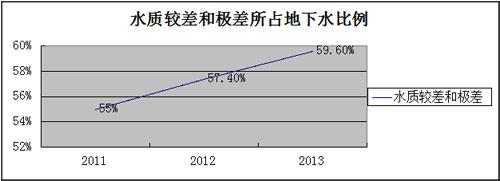 【慧聰水工業網】地下水是中國北方地區尤其是華北平原重要的水源,華北地區百分之八以上的水源取自地下水。筆者成長于華北平原,從小喝著地下水長大,小時每當夏天到來甚至直接飲用剛從地下抽上來的地下水,清涼甘甜。然而,《2013中國國土資源公報》顯示,近60%的地下水水質較差。該《公報》顯示,我國地下水水質較差和極差兩項的占比達到59.6%,超過了水質呈優良、良好、較好三類所占的比例。從2011年到2013年,較差和極差級水占比從55%、57.4%上升到59.6%,說明我國地下水水質仍在逐步變差。